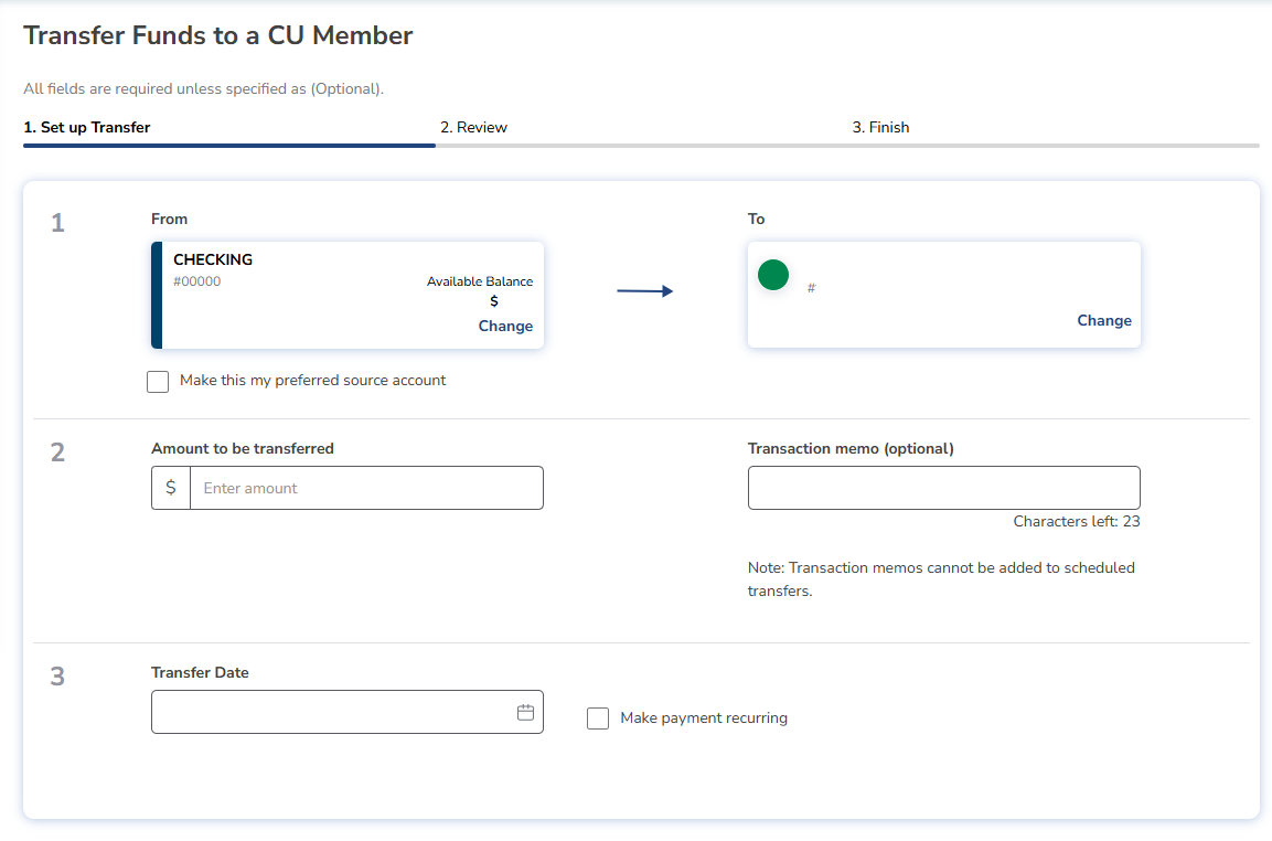 - Easily make recurring or one-time transfers between accounts.